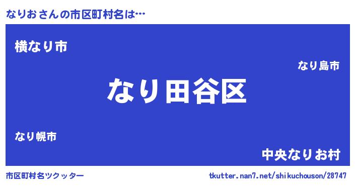 | 男性向けラノベタイトル風あだ名 | 『うちのなりおが世界を掌握している!』 |