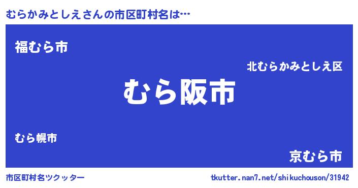| 男性向けラノベタイトル風あだ名 | 『むらかみとしえの嫁は女の子じゃないと思った?』 |