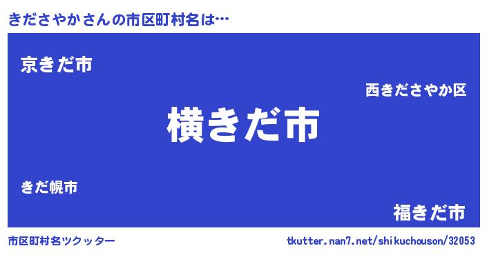 きださやかさんの市区町村名は… 『横きだ市』『京きだ市』『福きだ市』 ツクッター #市区町村名ツクッター http://tkutter.nan7.net/shikuchouson/32053/