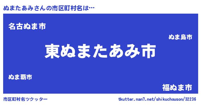 | 男性向けラノベタイトル風あだ名 | 『ぬまたあみの憂鬱』 |