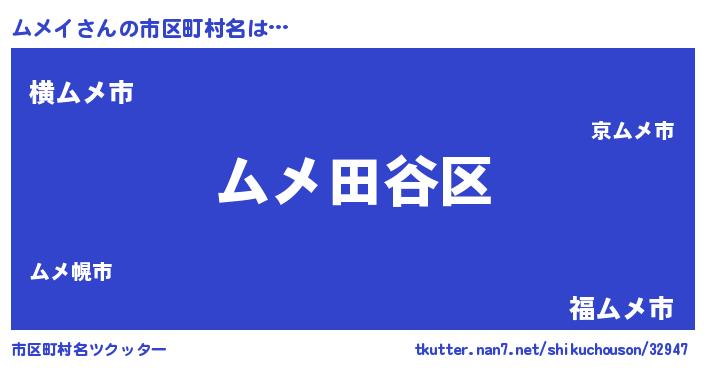 | 意味不明あだ名 | 『自称ムメイ』『めかぶ科ムメイ属』 |