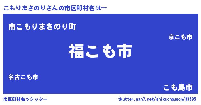 | 男性向けラノベタイトル風あだ名 | 『こもりまさのり~年齢イコール彼女いない歴の魔法使い~』 |