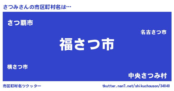 | 男性向けラノベタイトル風あだ名 | 『さつみ~年齢イコール彼女いない歴の魔法使い~』 |