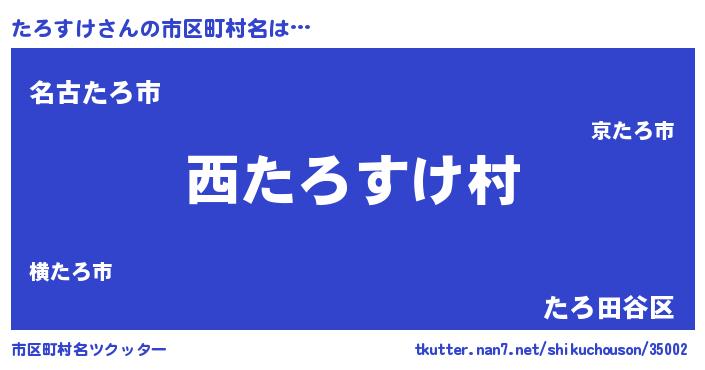 | 男性向けラノベタイトル風あだ名 | 『たろすけの憂鬱』『魔弾の王とたろすけ』 |