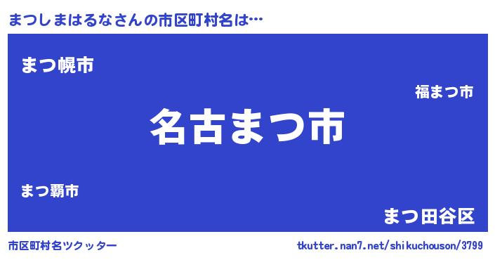 | 男性向けラノベタイトル風あだ名 | 『はたらくまつしまはるなさま!』 |