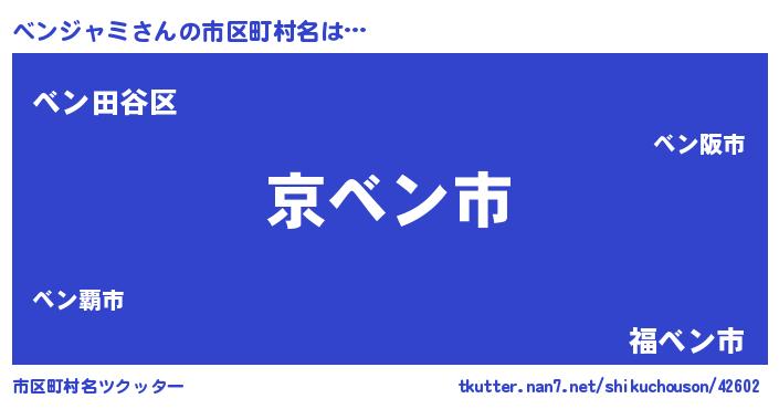 | 意味不明あだ名 | 『住所不定無職ベンジャミ(85歳)』 |