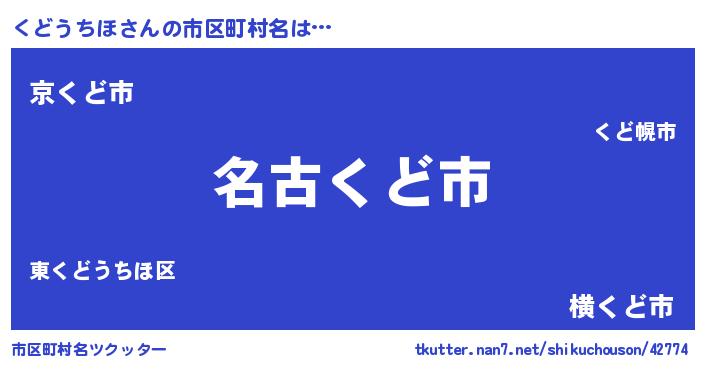 | ヒーロー風カッコイイあだ名 | 『仮面クドダー』『最強戦士クドウチホ』 |