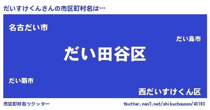 | 男性向けラノベタイトル風あだ名 | 『うちのだいすけくんが世界を掌握している!』 |