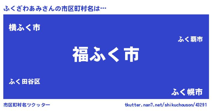 | 女子向けラノベタイトル風あだ名 | 『ふくざわあみの玉の輿計画!』 |