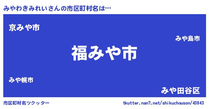 | ポケモン風あだ名 | 『ミヤキング』『ミーヤイ』 |