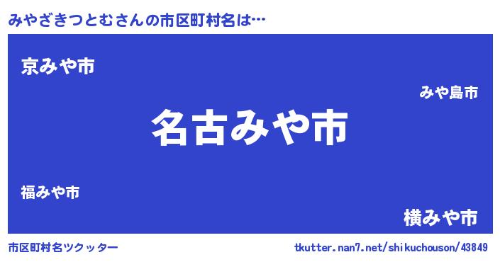 | 意味不明あだ名 | 『住所不定無職みやざきつとむ(93歳)』 |