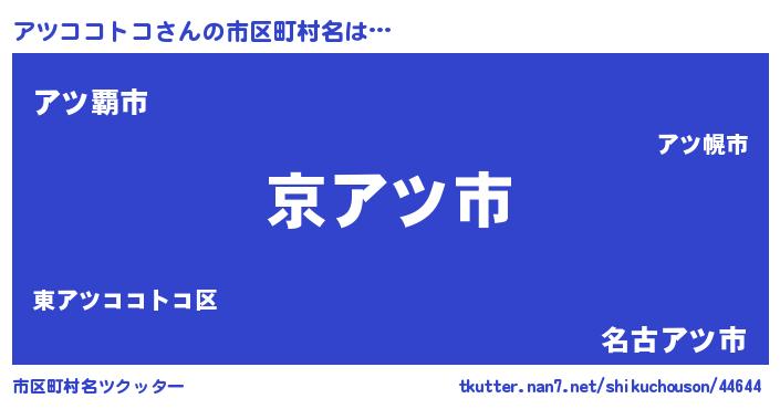 | 意味不明あだ名 | 『住所不定無職アツココトコ(85歳)』 |
