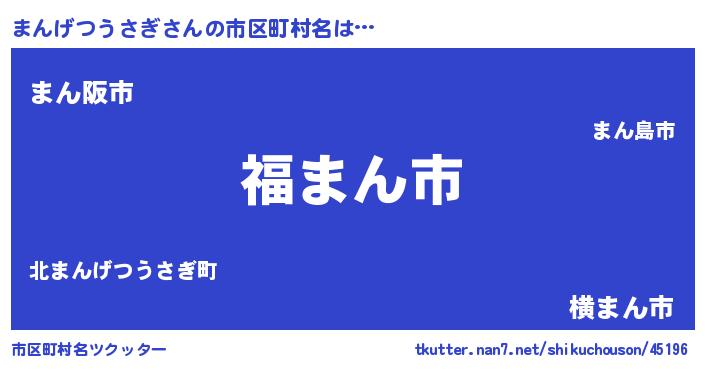 | 男性向けラノベタイトル風あだ名 | 『まんげつうさぎ~年齢イコール彼女いない歴の魔法使い~』 |