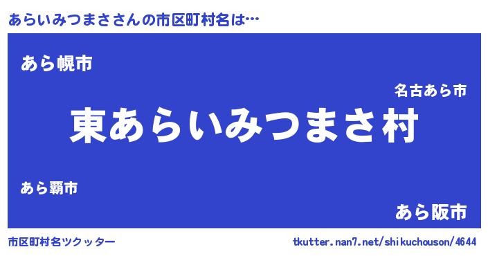 | 男性向けラノベタイトル風あだ名 | 『あらいみつまさの憂鬱』 |