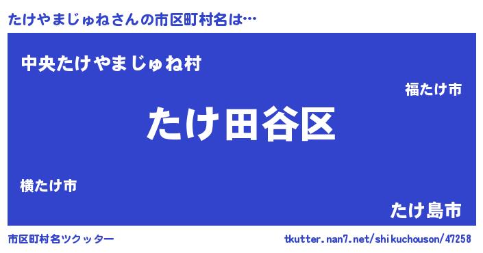 | 男性向けラノベタイトル風あだ名 | 『うちのたけやまじゅねが世界を掌握している!』 |