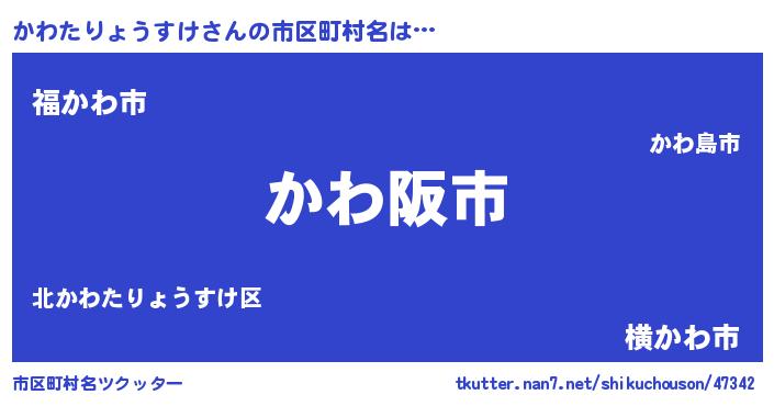 男性向けラノベタイトル風あだ名 | 『かわたりょうすけの嫁は女の子じゃないと思った?』 |