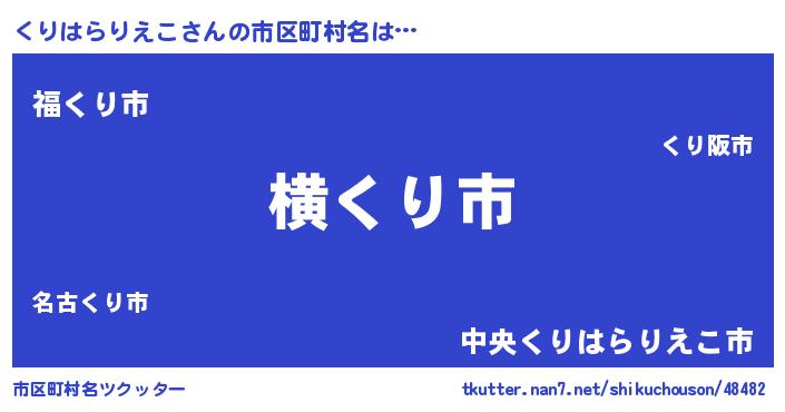 | 男性向けラノベタイトル風あだ名 | 『Re:くりはらりえこから始める異世界生活』 |