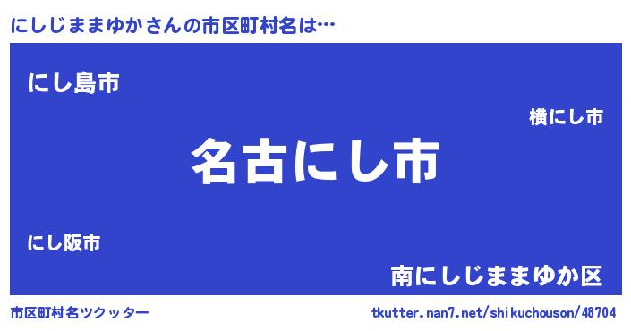 | 男性向けラノベタイトル風あだ名 | 『にしじままゆかに滅ぼされるだけの簡単なお仕事です』 |