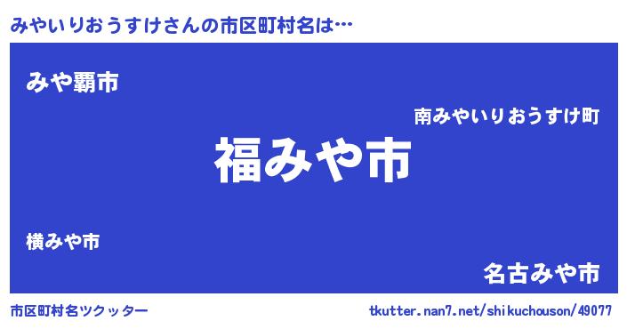 | 男性向けラノベタイトル風あだ名 | 『ミヤイリオウスケスレイヤー』 |