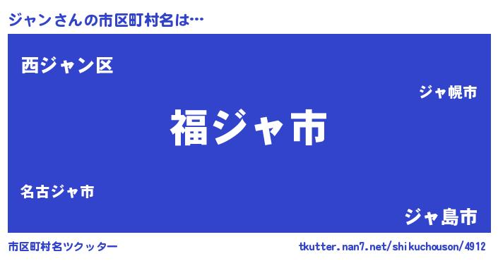 | 男性向けラノベタイトル風あだ名 | 『ジャン~年齢イコール彼女いない歴の魔法使い~』 |