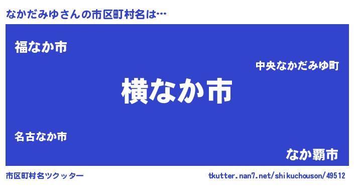 | 男性向けラノベタイトル風あだ名 | 『Re:なかだみゆから始める異世界生活』 |