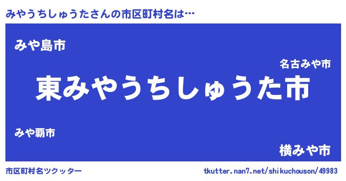 | 男性向けラノベタイトル風あだ名 | 『みやうちしゅうたの憂鬱』 |