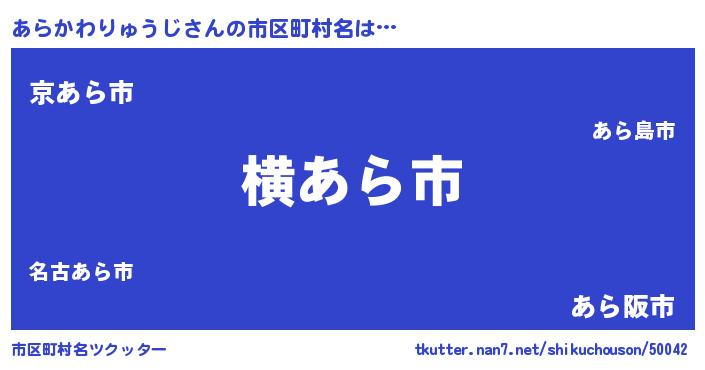 | ヘコむあだ名 | 『あらっぺ』『あらかわりゅうじ(小並感)』 |
