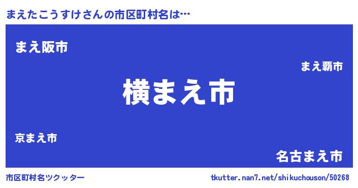 | 男性向けラノベタイトル風あだ名 | 『Re:まえたこうすけから始める異世界生活』 |