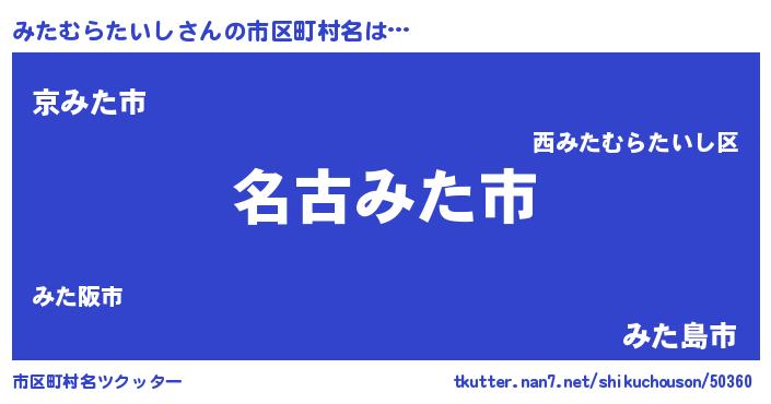| 意味不明あだ名 | 『住所不定無職みたむらたいし(98歳)』 |