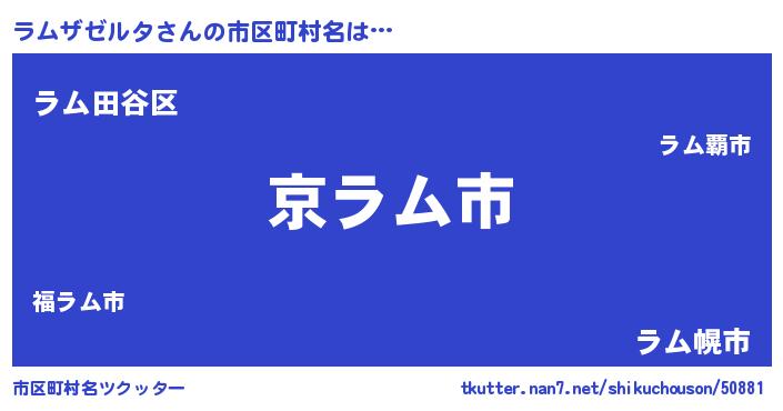 | 男性向けラノベタイトル風あだ名 | 『この素晴らしい世界にラムザゼルタを!』 |