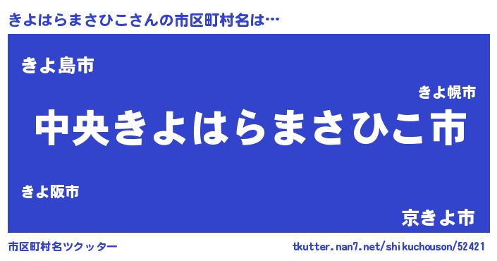 | 男性向けラノベタイトル風あだ名 | 『きよはらまさひこの憂鬱』 |