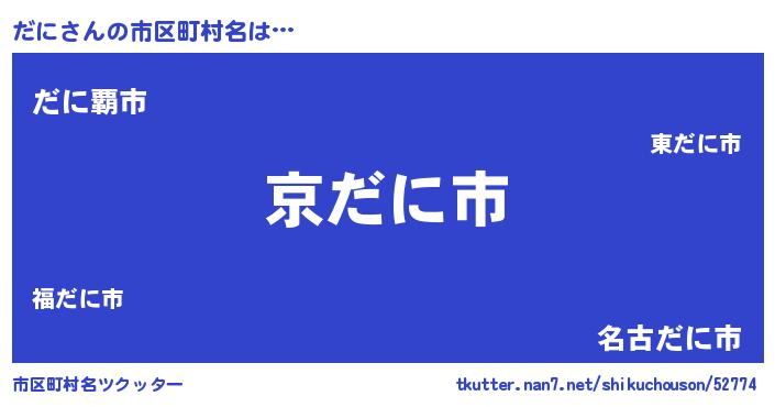 | 意味不明あだ名 | 『住所不定無職だに(65歳)』『永久保存だに』 |