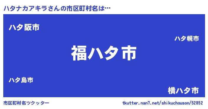 | 肩書あだ名 | 『ハタナカアキラ大将』 |
