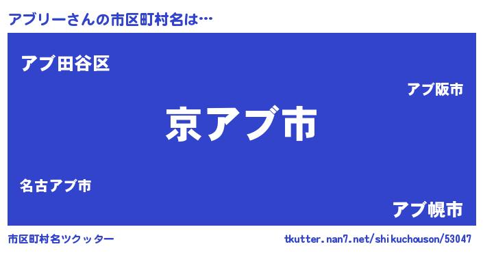| 男性向けラノベタイトル風あだ名 | 『この素晴らしい世界にアブリーを!』 |
