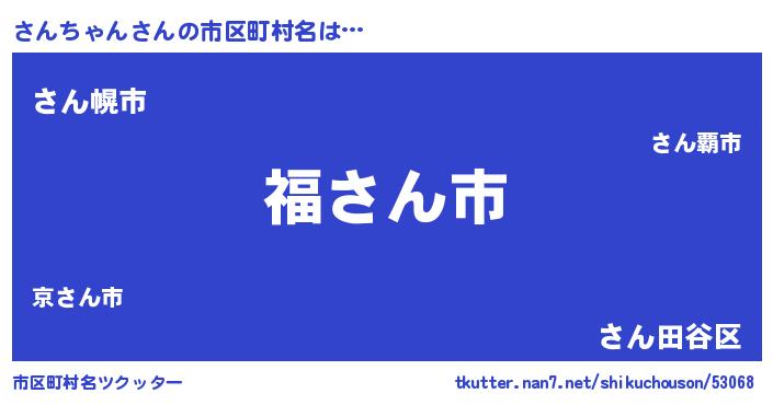 | 男性向けラノベタイトル風あだ名 | 『さんちゃん~年齢イコール彼女いない歴の魔法使い~』 |