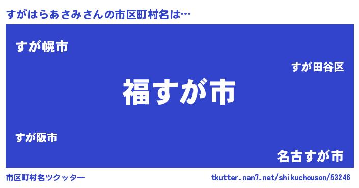 | 男性向けラノベタイトル風あだ名 | 『すがはらあさみ~年齢イコール彼女いない歴の魔法使い~』 |