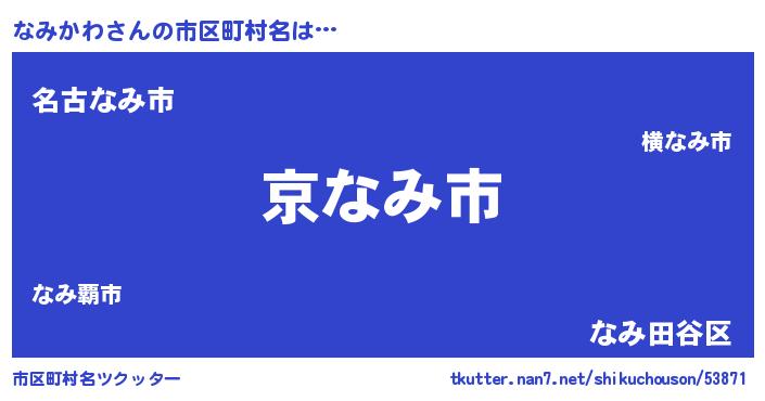 | 男性向けラノベタイトル風あだ名 | 『この素晴らしい世界になみかわを!』 |