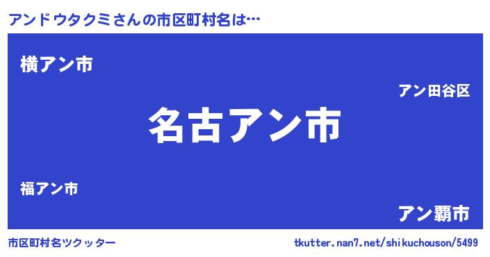 | 意味不明あだ名 | 『自称アンドウタクミ』 |