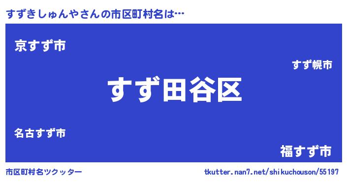 | 男性向けラノベタイトル風あだ名 | 『うちのすずきしゅんやが世界を掌握している!』 |