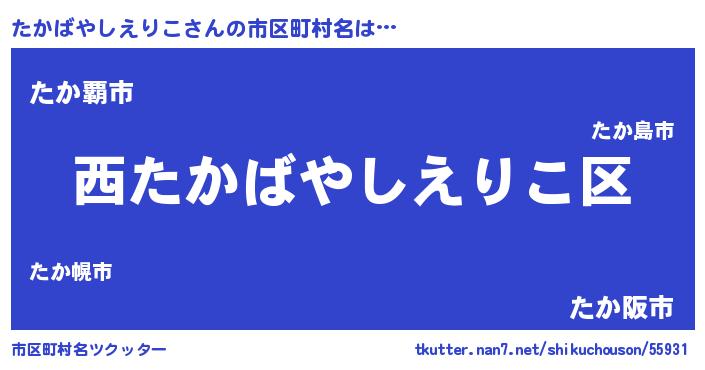 | 男性向けラノベタイトル風あだ名 | 『タカバヤシエリコアートオンライン』 |