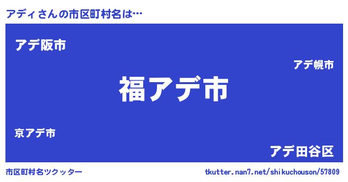 | 男性向けラノベタイトル風あだ名 | 『転生したらアディだった件』 |