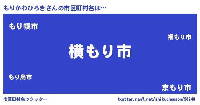 | 男性向けラノベタイトル風あだ名 | 『Re:もりかわひろきから始める異世界生活』 |