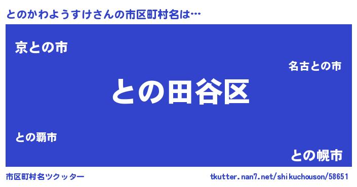 | 男性向けラノベタイトル風あだ名 | 『うちのとのかわようすけが世界を掌握している!』 |