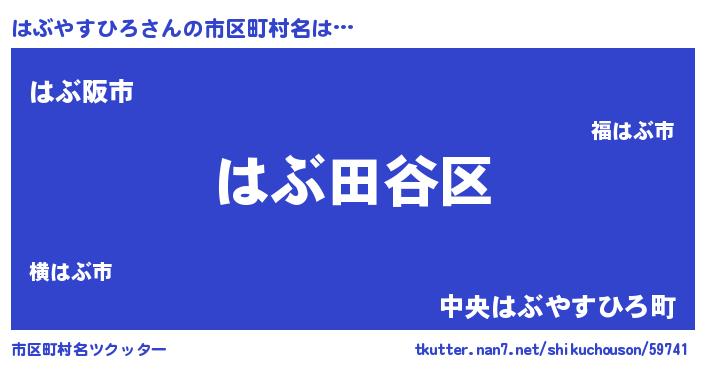 | 男性向けラノベタイトル風あだ名 | 『うちのはぶやすひろが世界を掌握している!』 |