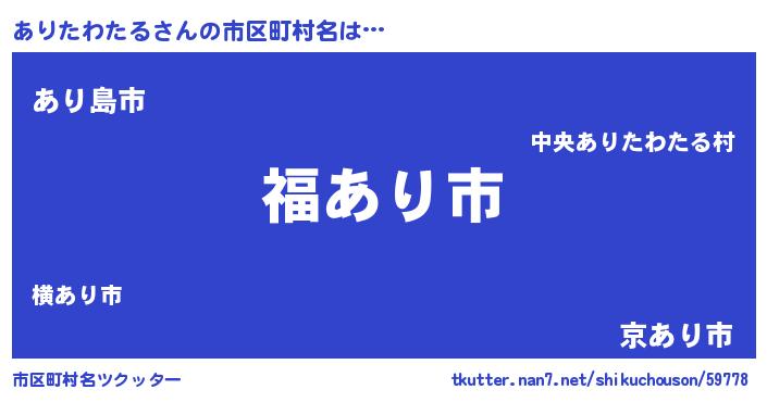 | 女子向けラノベタイトル風あだ名 | 『ありたわたるの玉の輿計画!』 |