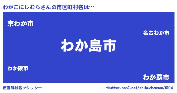 | 男性向けラノベタイトル風あだ名 | 『ノーゲーム・ノーワカコニシムラ』 |