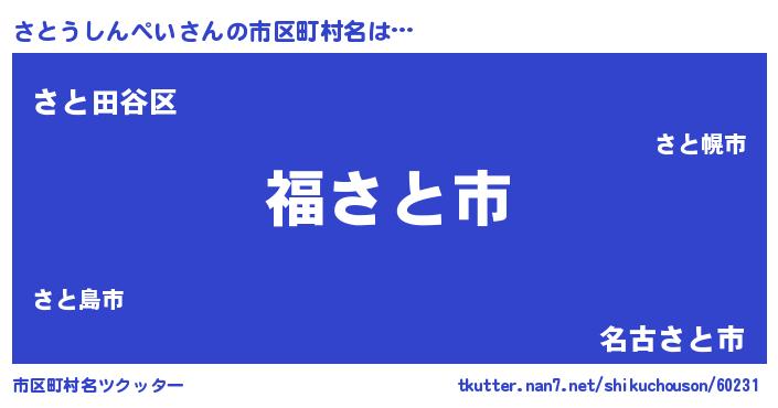 | 男性向けラノベタイトル風あだ名 | 『転生したらさとうしんぺいだった件』 |
