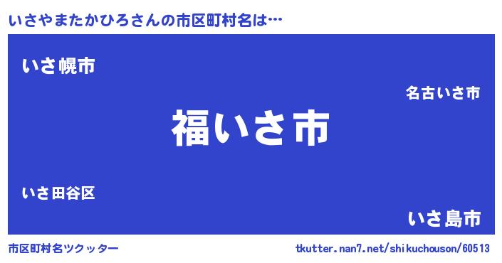| 男性向けラノベタイトル風あだ名 | 『転生したらいさやまたかひろだった件』 |