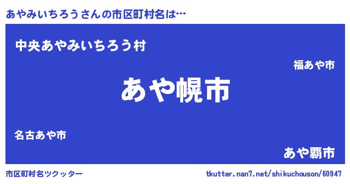 あやみいちろうさんの市区町村名