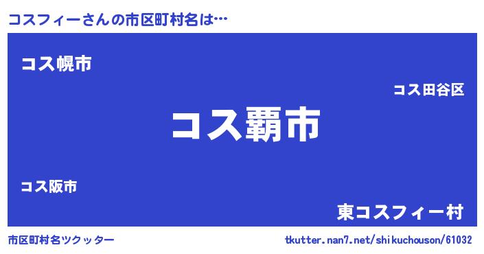 | 男性向けラノベタイトル風あだ名 | 『コスフィーという概念が存在しない退屈な世界 』 |